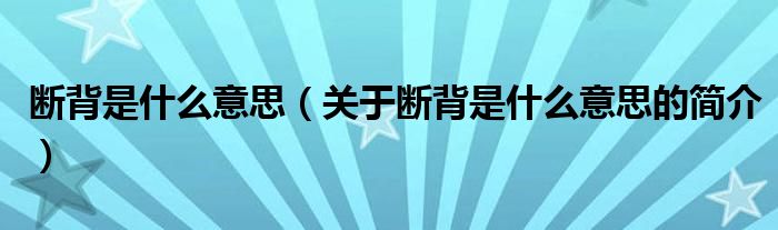 本文關于斷背是什么意思的簡介就講解完畢,希望對大家有所幫助。