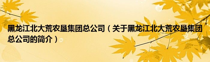 本文關(guān)于黑龍江北大荒農(nóng)墾集團(tuán)總公司的簡介就講解完畢,希望對大家有所幫助。