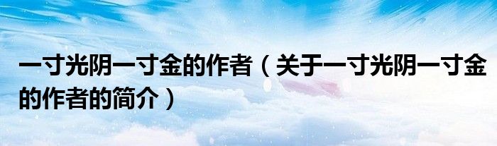 本文關于一寸光陰一寸金的作者的簡介就講解完畢,希望對大家有所幫助。