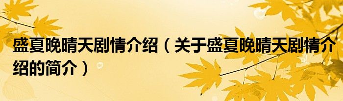 大家好,盛夏晚晴天劇情介紹,關于盛夏晚晴天劇情介紹的簡介很多人還不知道,現在讓我們一起來看看吧!
