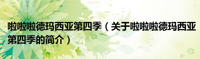 大家好,啦啦啦德瑪西亞第四季,關于啦啦啦德瑪西亞第四季的簡介很多人還不知道,現在讓我們一起來看看吧!