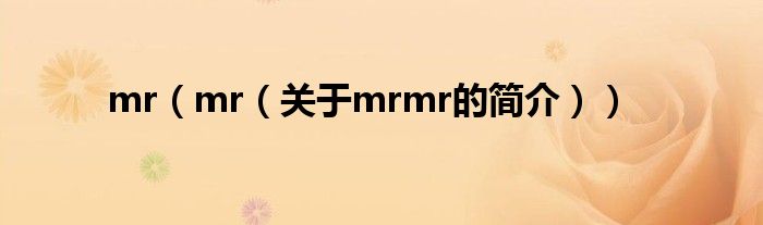 大家好,mr mr,關于mr mr的簡介很多人還不知道,現在讓我們一起來看看吧!