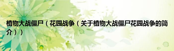 本文關(guān)于植物大戰(zhàn)僵尸 花園戰(zhàn)爭(zhēng)的簡(jiǎn)介就講解完畢,希望對(duì)大家有所幫助。