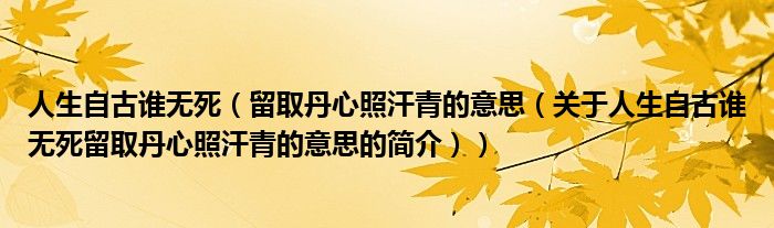 本文關于人生自古誰無死 留取丹心照汗青的意思的簡介就講解完畢,希望對大家有所幫助。