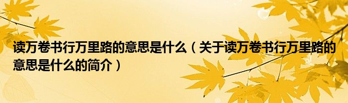 本文關于讀萬卷書行萬里路的意思是什么的簡介就講解完畢,希望對大家有所幫助。