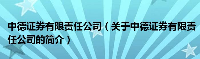 本文關(guān)于中德證券有限責(zé)任公司的簡介就講解完畢,希望對大家有所幫助。