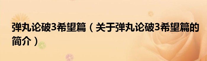 本文關于彈丸論破3希望篇的簡介就講解完畢,希望對大家有所幫助。