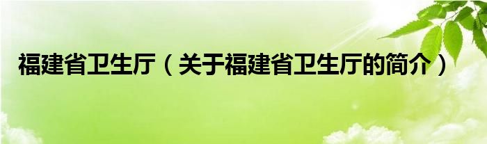本文關于福建省衛(wèi)生廳的簡介就講解完畢,希望對大家有所幫助。