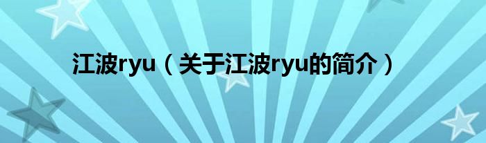 大家好,江波ryu,關于江波ryu的簡介很多人還不知道,現在讓我們一起來看看吧!