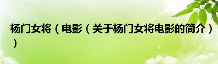 本文關于楊門女將 電影的簡介就講解完畢,希望對大家有所幫助。