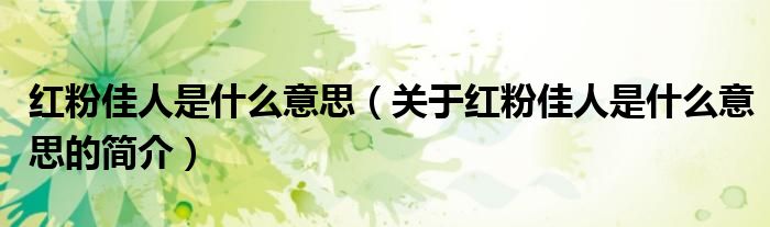 本文關于紅粉佳人是什么意思的簡介就講解完畢,希望對大家有所幫助。