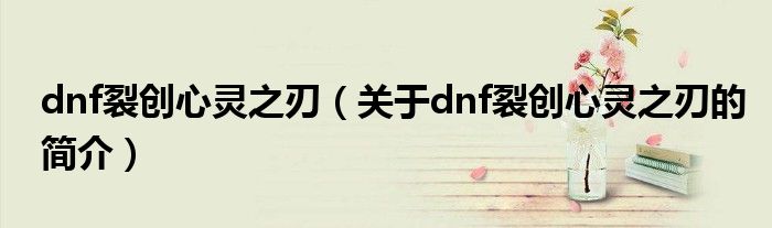 大家好,dnf裂創心靈之刃,關于dnf裂創心靈之刃的簡介很多人還不知道,現在讓我們一起來看看吧!