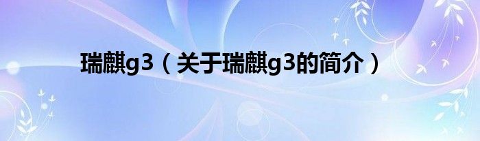 本文關于瑞麒g3的簡介就講解完畢,希望對大家有所幫助。