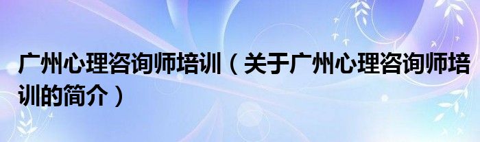 本文關于廣州心理咨詢師培訓的簡介就講解完畢,希望對大家有所幫助。