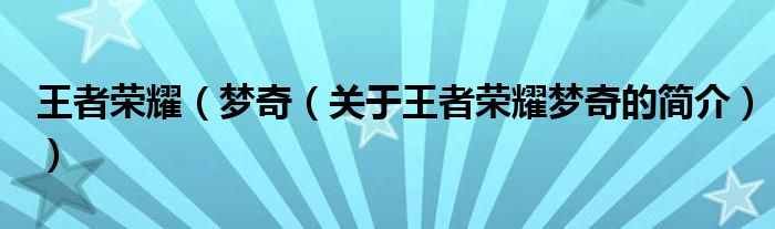 本文關(guān)于王者榮耀 夢(mèng)奇的簡(jiǎn)介就講解完畢,希望對(duì)大家有所幫助。