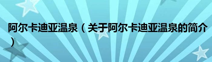 大家好,阿爾卡迪亞溫泉,關于阿爾卡迪亞溫泉的簡介很多人還不知道,現在讓我們一起來看看吧!