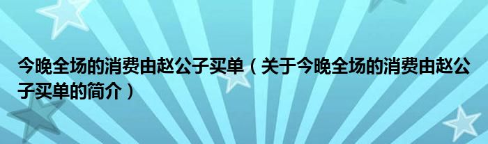 本文關于今晚全場的消費由趙公子買單的簡介就講解完畢,希望對大家有所幫助。