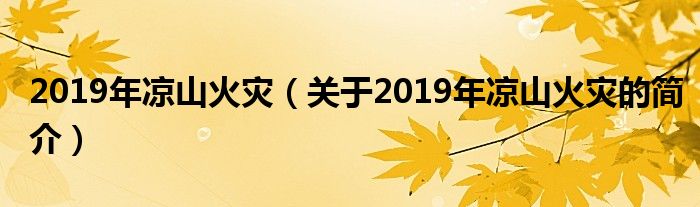 本文關(guān)于2019年涼山火災(zāi)的簡介就講解完畢,希望對大家有所幫助。