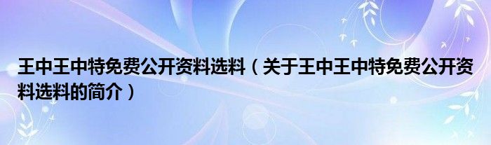 本文關于王中王中特免費公開資料選料的簡介就講解完畢,希望對大家有所幫助。