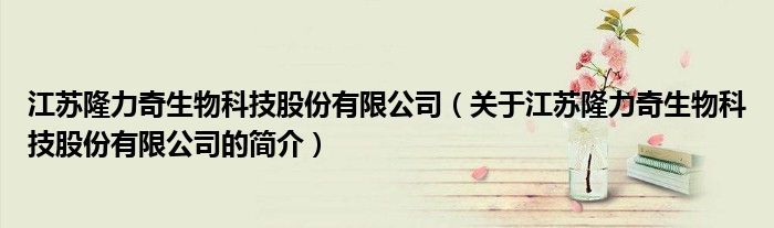 本文關(guān)于江蘇隆力奇生物科技股份有限公司的簡(jiǎn)介就講解完畢,希望對(duì)大家有所幫助。