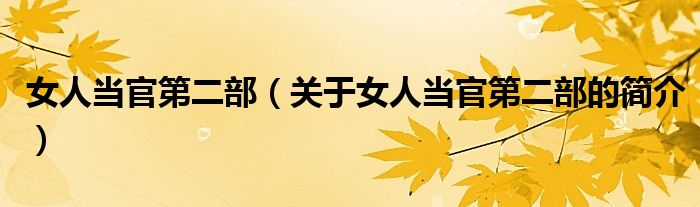大家好,女人當官第二部,關于女人當官第二部的簡介很多人還不知道,現在讓我們一起來看看吧!