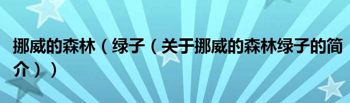 本文關于挪威的森林 綠子的簡介就講解完畢,希望對大家有所幫助。