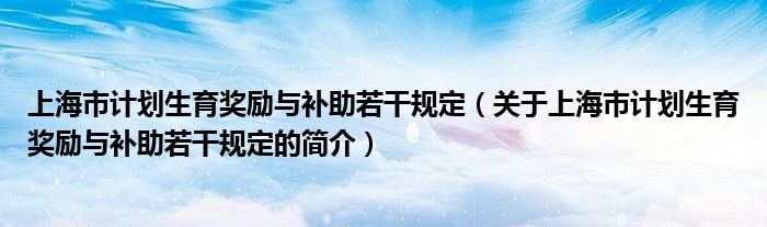 本文關于上海市計劃生育獎勵與補助若干規定的簡介就講解完畢,希望對大家有所幫助。