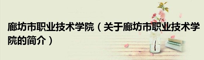 本文關于廊坊市職業技術學院的簡介就講解完畢,希望對大家有所幫助。