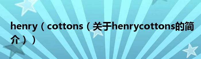 大家好,henry cottons,關于henry cottons的簡介很多人還不知道,現在讓我們一起來看看吧!