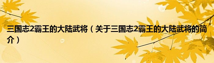 本文關于三國志2霸王的大陸武將的簡介就講解完畢,希望對大家有所幫助。