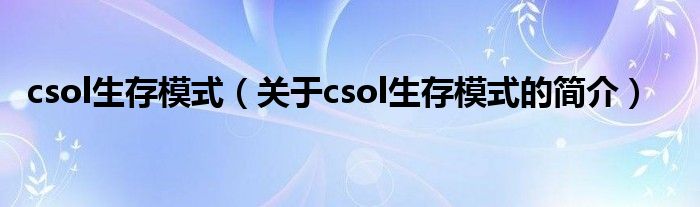 本文關于csol生存模式的簡介就講解完畢,希望對大家有所幫助。