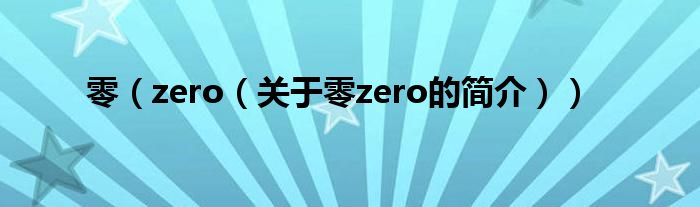 本文關于零 zero的簡介就講解完畢,希望對大家有所幫助。