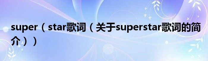 本文關于super star 歌詞的簡介就講解完畢,希望對大家有所幫助。