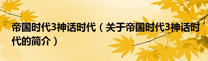 本文關于帝國時代3神話時代的簡介就講解完畢,希望對大家有所幫助。