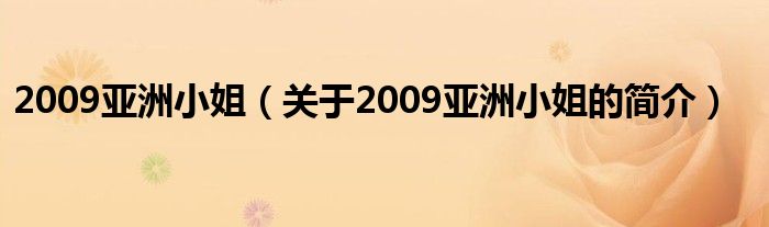 本文關于2009亞洲小姐的簡介就講解完畢,希望對大家有所幫助。