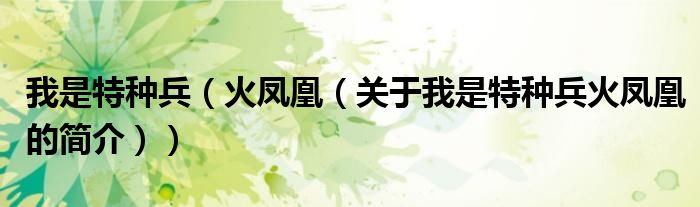 本文關(guān)于我是特種兵 火鳳凰的簡介就講解完畢,希望對大家有所幫助。