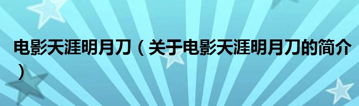 本文關于電影天涯明月刀的簡介就講解完畢,希望對大家有所幫助。
