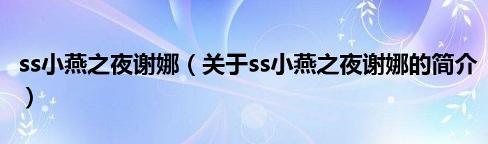 本文關于ss小燕之夜謝娜的簡介就講解完畢,希望對大家有所幫助。