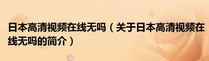 本文關(guān)于日本高清視頻在線無嗎的簡介就講解完畢,希望對大家有所幫助。
