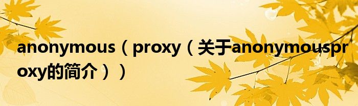 大家好,anonymous proxy,關(guān)于anonymous proxy的簡(jiǎn)介很多人還不知道,現(xiàn)在讓我們一起來(lái)看看吧!