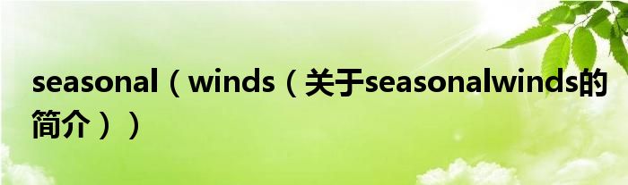 大家好,seasonal winds,關于seasonal winds的簡介很多人還不知道,現在讓我們一起來看看吧!
