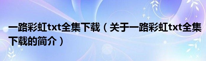 本文關于一路彩虹txt全集下載的簡介就講解完畢,希望對大家有所幫助。