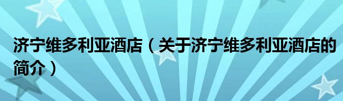 本文關于濟寧維多利亞酒店的簡介就講解完畢,希望對大家有所幫助。