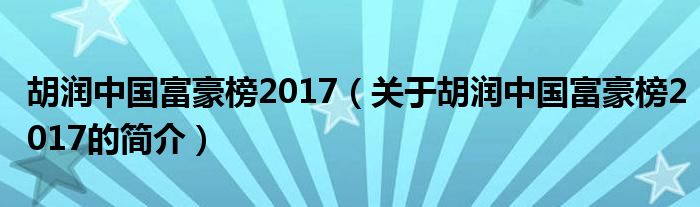 大家好,胡潤中國富豪榜2017,關于胡潤中國富豪榜2017的簡介很多人還不知道,現在讓我們一起來看看吧!