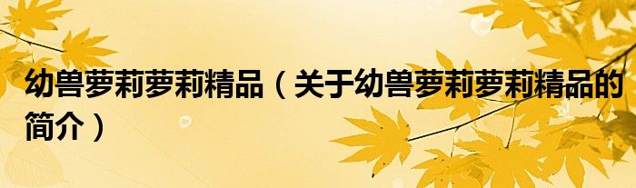 本文關于幼獸蘿莉蘿莉精品的簡介就講解完畢,希望對大家有所幫助。
