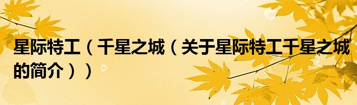 本文關于星際特工 千星之城的簡介就講解完畢,希望對大家有所幫助。