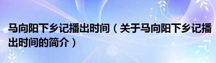 本文關于馬向陽下鄉記播出時間的簡介就講解完畢,希望對大家有所幫助。