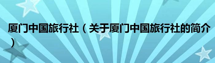大家好,廈門中國旅行社,關(guān)于廈門中國旅行社的簡介很多人還不知道,現(xiàn)在讓我們一起來看看吧!