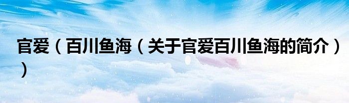 本文關于官愛 百川魚海的簡介就講解完畢,希望對大家有所幫助。