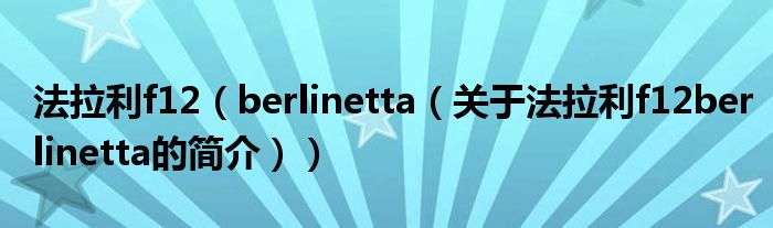 本文關于法拉利f12 berlinetta的簡介就講解完畢,希望對大家有所幫助。